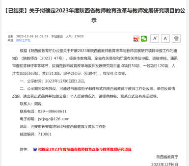 近日,省教育厅对2023年度陕西省教师教育改革与教师发展研究项目拟立项项目进行了公示,拟确定教师教育改革与教师发展研究项目213项。我院张小花教授主持的《智慧教育环境下应用型高校教师专业发展与实践研究》成功获批一般项目。截至目前,我院已获批陕西省省级教改项目4项。