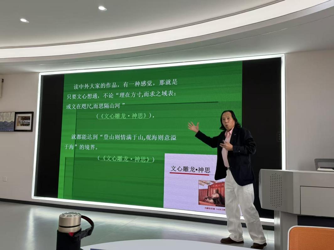讲座以地域文学翻译为核心,结合自身丰富实践,深刻阐释了文学翻译的核心要义。他提出,尽管汉英语言体系与文化背景存在差异,但只要实现“文心相通”,就能达成“登山则情满于山,观海则意溢于海”的境界。同时,他针对人工智能在文学翻译中的应用指出,AI虽能产出海量文本,却在精准传递文字神韵上存在局限,恰如古人所言“富于万篇,贫于一字”。