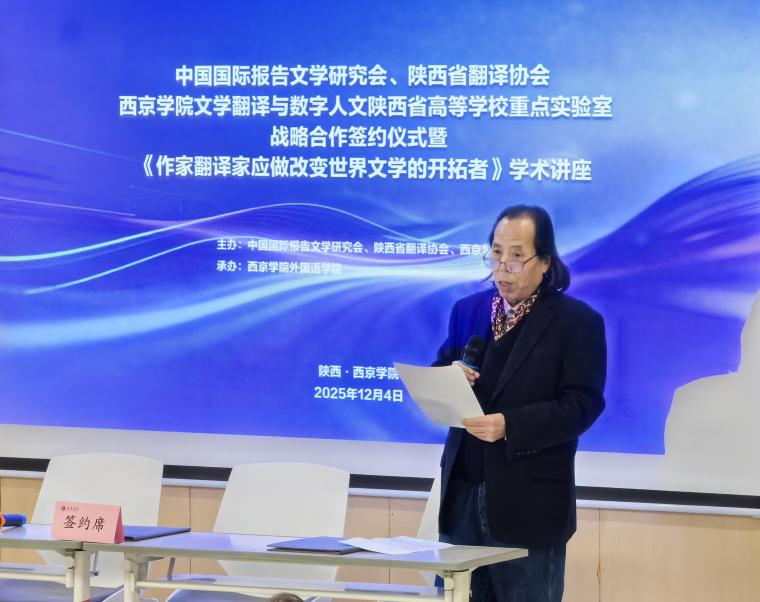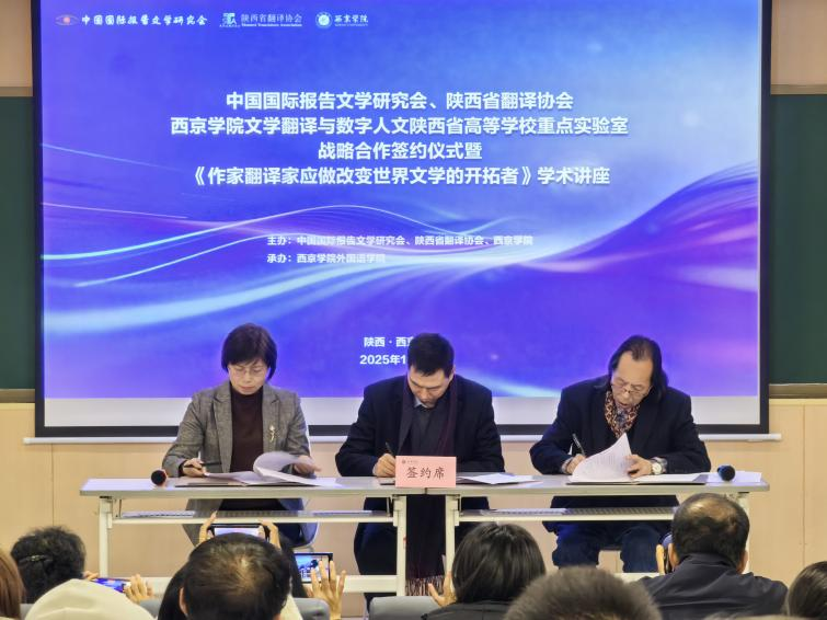活动伊始,赵晏彪代表中国国际报告文学研究会,胡宗锋代表陕西省翻译协会,张小花代表西京学院文学翻译与数字人文陕西省高等学校重点实验室,共同签订战略合作协议。此次三方合作聚焦文学翻译创新、跨文化交流传播、学术成果转化三大核心领域,旨在搭建作家与翻译家深度对话的桥梁,为中国文学“走出去”、世界文学 “读懂中国” 注入强劲动能,是新时代文化领域资源整合、协同发展的重要实践。