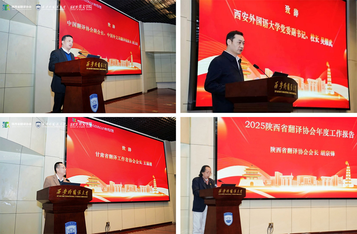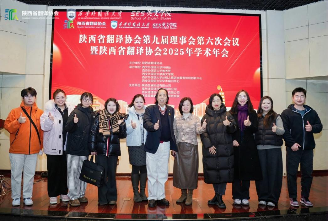 2025年12月27日,陕西省翻译协会第九届理事会第六次会议暨2025年学术年会在西安外国语大学长安校区成功举办。本次盛会以“凝聚行业力量,聚焦陕西地域文化传播,沉淀发展成果,表彰激励先进,铺定未来发展方向,提升专业服务质量”为宗旨,汇聚全省翻译行业精英、高校专家学者及会员单位代表,共话翻译学科创新路径,共谋陕西文化国际传播新篇。陕西省翻译协会会长、西京学院外国语学院院长胡宗锋教授以及西京学院外国语学院陕西省译协会会员代表、副院长田娟等师生参会,深度参与各项议程,为陕西翻译事业高质量发展贡献西京智慧与力量。