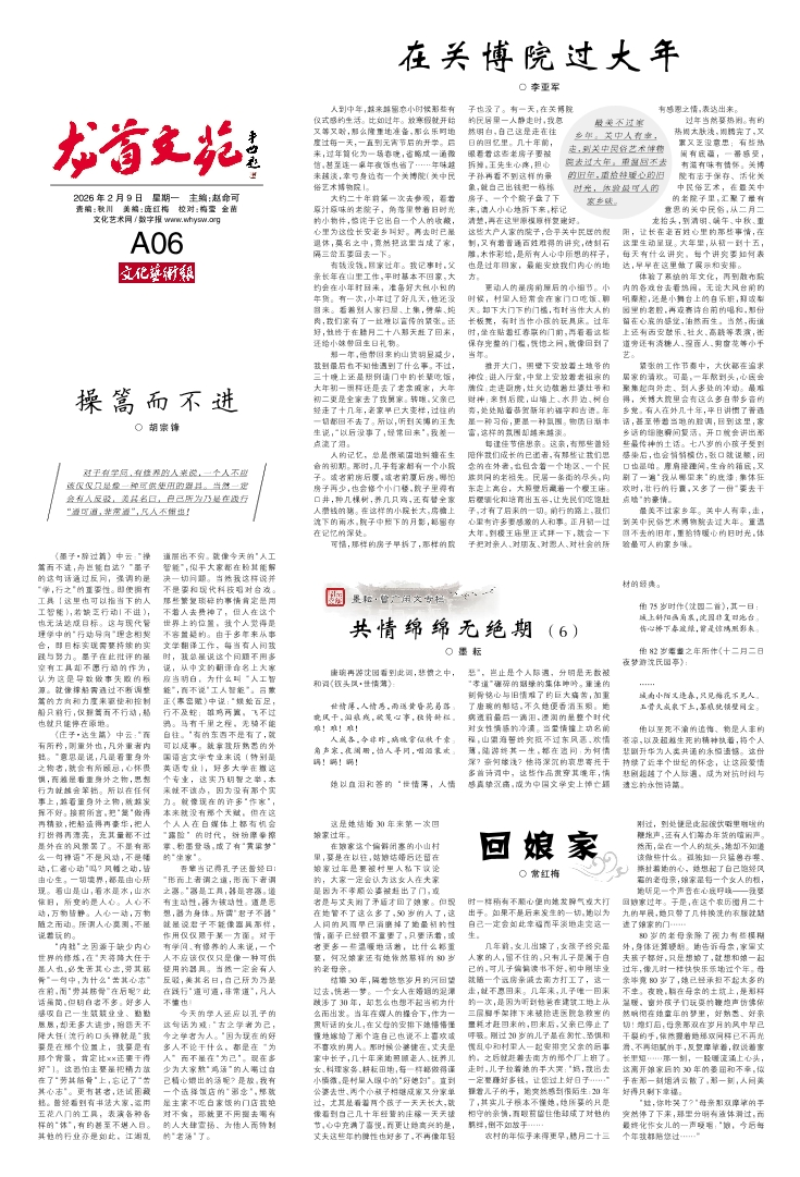 近日,陕西省翻译协会主席、西京学院外国语学院院长胡宗锋教授的文章《操篙而不进》正式刊发于2026年2月9日《文化艺术报》A06版。文章融经典典籍解读与当下社会思考于一体,兼具思想性与现实指导意义。