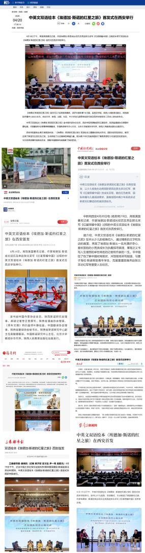 近日,由西京学院、陕西人民教育出版社、陕西国际传播中心(SICC)联合主办,陕西省斯诺研究中心、西京学院延安精神与国际友人研究院(外国语学院、传媒学院)承办的“中英文双语绘本《埃德加·斯诺的红星之旅》首发式”在西京学院举行。活动一经举办便引发广泛社会反响,新华网、央视新闻、中国新闻网、光明日报、中国青年报、陕西日报以及陕西国际传播中心等数十家权威媒体对活动成果与深层价值进行了多角度、深层次专题报道。