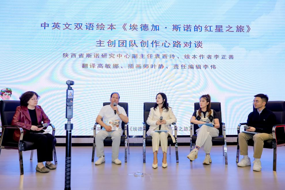 该绘本由中国作协会员、西京学院特聘教授李正善创作,陕西省漫画协会理事叶静绘画,中国翻译协会理事高敏娜翻译,北京大学教授、中国斯诺研究中心主任孙华作序,陕西人民教育出版社出版发行。作品以生动图文与精炼双语文本,再现了国际友人埃德加・斯诺的传奇历程,是面向青少年讲好国际友人故事、传承红色基因的创新实践。