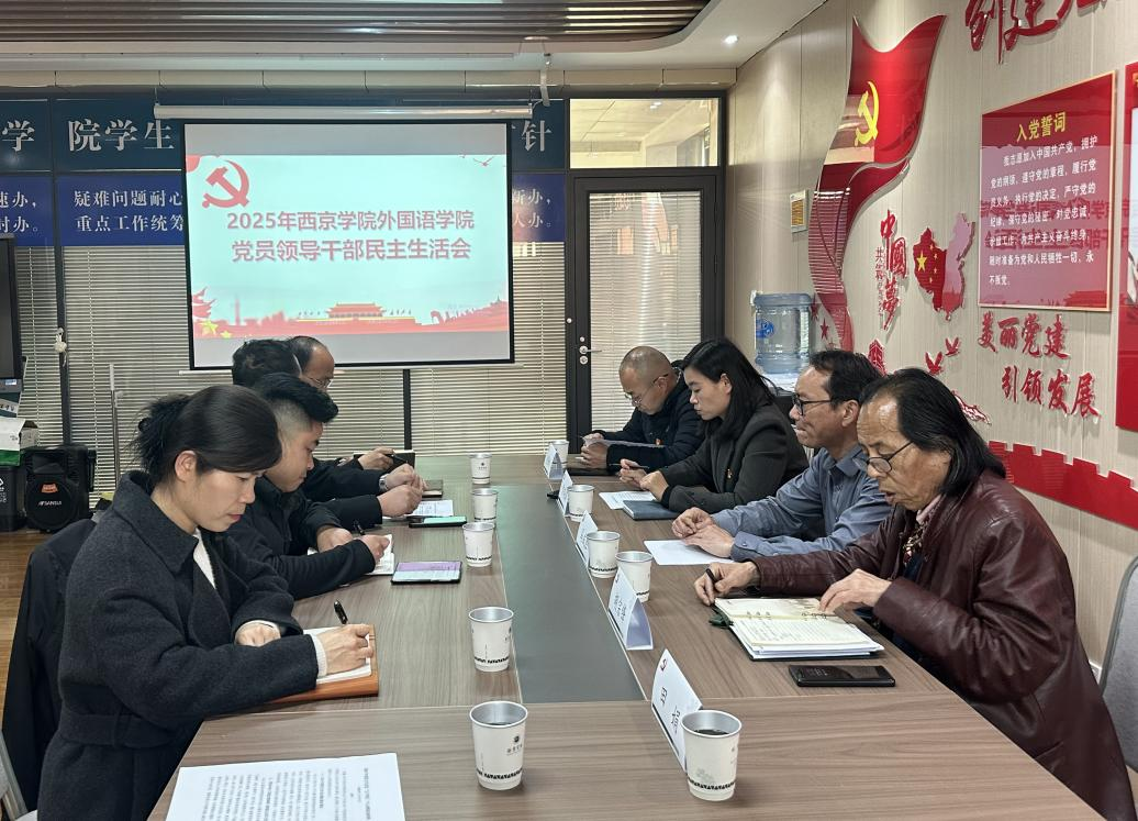 2026年3月5日,中共西京学院外国语学院委员会2025年度民主生活会在三号教学楼4楼党员活动室召开。西京学院党委副书记马成胜到会指导,学院分党委全体委员参会,学院领导班子成员及各各党支部书记列席,会议由学院分党委书记常晓娟主持。