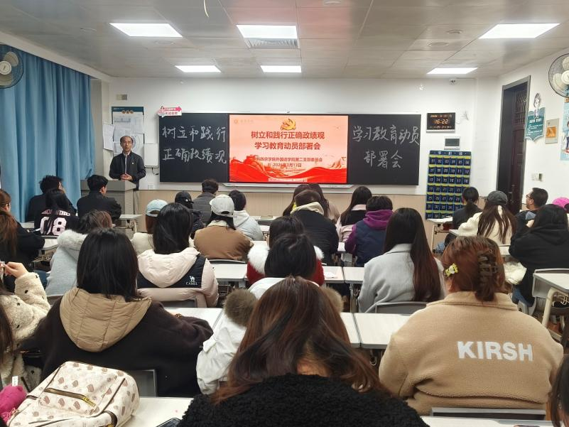 院党委第二党支部于16:30在3311教室召开专题动员部署会,党支部书记何权红主持,全体党员参会。支部宣传委员宋江波紧扣习近平总书记关于树立和践行正确政绩观的重要论述,结合高校基层党建与学科育人实际,领学解析正确政绩观的核心内涵、实践要求与检验标准。何权红对支部全体党员提出工作要求:要提高政治站位,把学习教育与理论学习、组织生活、师德师风建设、人才培养等工作深度融合,以正确政绩观推动党建与业务融合发展,着力打造政治过硬、作风扎实、作用突出的基层党支部。