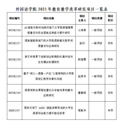 此次立项既是学院深化教学改革的重要契机,也是推动高质量发展的有力抓手。学院将以此为起点,持续鼓励教师探索“金课”建设、混合式教学等创新模式,力争形成一批高水平教改成果,为培养新时代 “新文科”人才提供有力支撑。