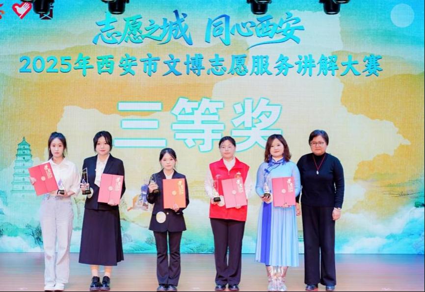 11月28日,由西安市委社会工作部、共青团西安市委、西安市文物局等多部门联合举办的“2025年西安市文博志愿服务讲解大赛”决赛在西安文理学院顺利举办,我院汉语国际教育2301班李佳祺同学凭借扎实文博知识与生动讲解,代表学校获大赛三等奖,我校亦因出色的组织工作获评“优秀组织单位”。